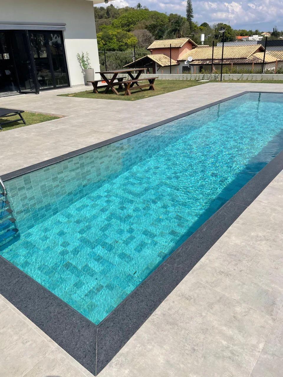 Área de Piscina Deslumbrante: Piscina de alta qualidade com 10m x 3m e 1,60m de profundidade, cercada por paisagismo encantador.