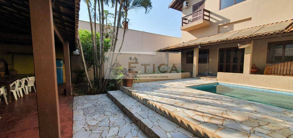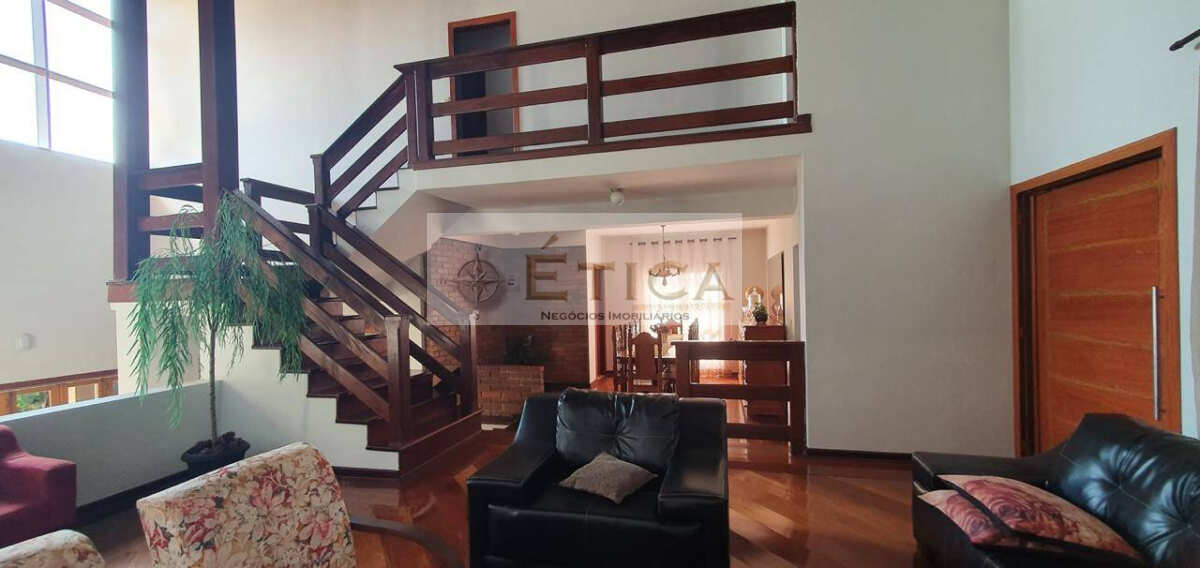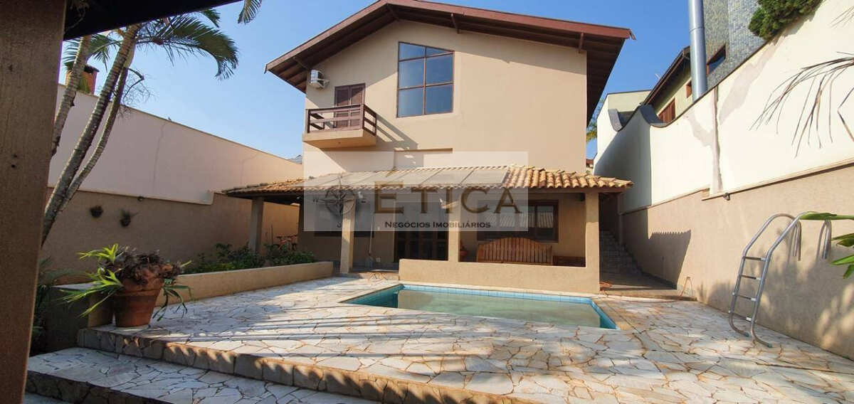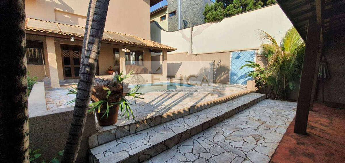 A residência de alto padrão transmite aconchego e rusticidade, ideal para momentos de relaxamento e convívio em família. Possui belo jardim, 3 vagas de garagem cobertas, ampla sala 3 ambientes, lavabo, cozinha com pia de granito, gabinete e armários planejados na cor branca, área de serviço coberta com tanque, banheiro de serviço, corredor lateral, quintal com piscina, churrasqueira, sauna, pia de apoio e armários. No piso superior, dispõe de amplo hall, 3 quartos, sendo 1 suíte com armários embutidos e sistema de ar-condicionado, sacada e amplo banheiro com hidromassagem.