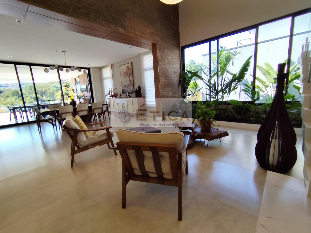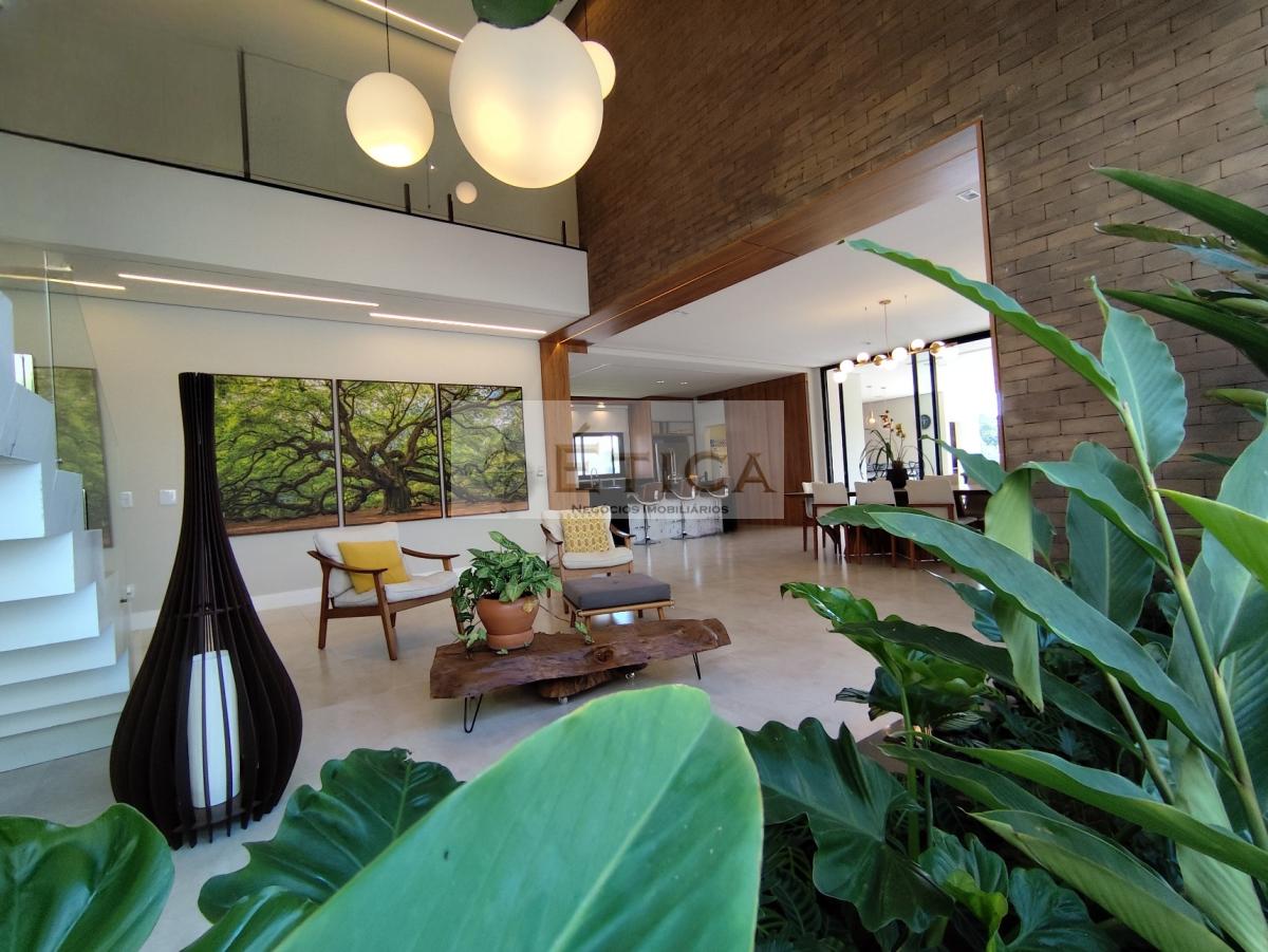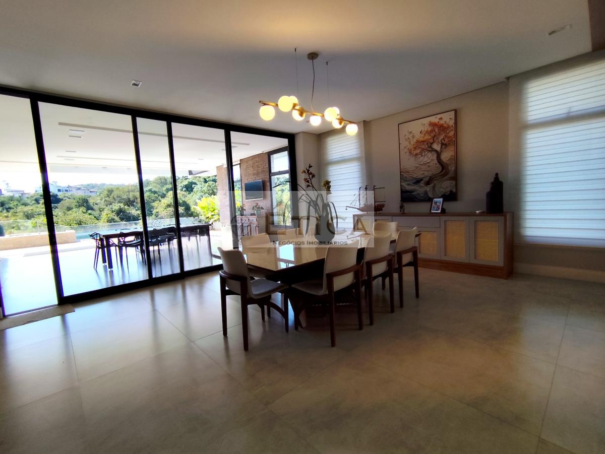 Salas: Sala de TV/cinema temática, sala de entrada, sala social com jardim interno (pé direito de 7 metros), sala de jantar.