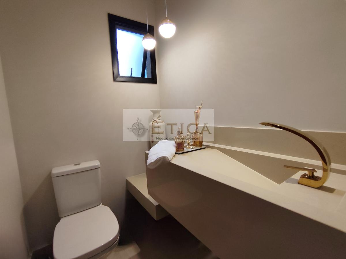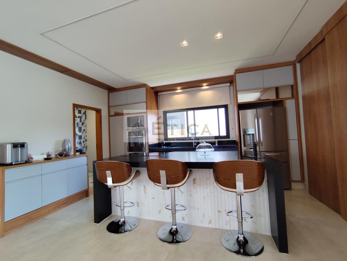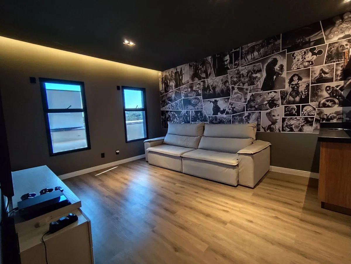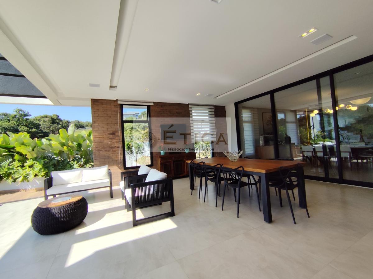 Salas: Sala de TV/cinema temática, sala de entrada, sala social com jardim interno (pé direito de 7 metros), sala de jantar.