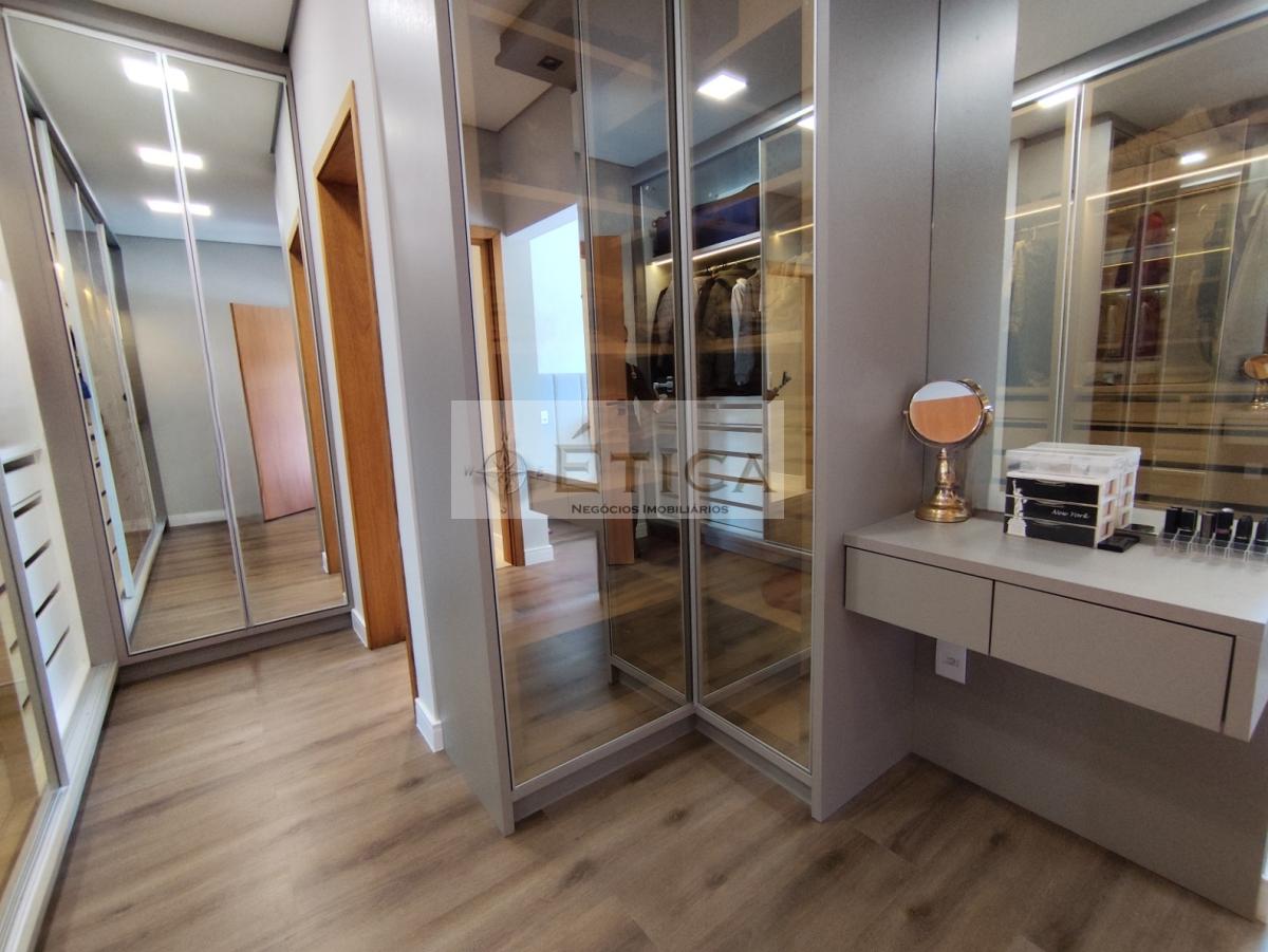 Suíte Máster 1: Amplo closet, banheiro com box até o teto, banheira, chuveiro duplo e pia dupla.