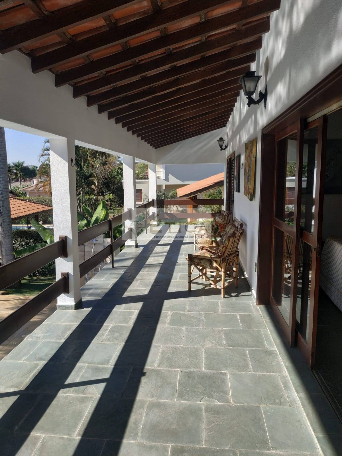 A chácara ainda conta com um salão de festas, ideal para receber amigos e familiares em ocasiões especiais. A cozinha é bem equipada, e a área de serviço oferece praticidade e funcionalidade. Com cinco banheiros, o imóvel garante conforto e praticidade para todos os moradores.