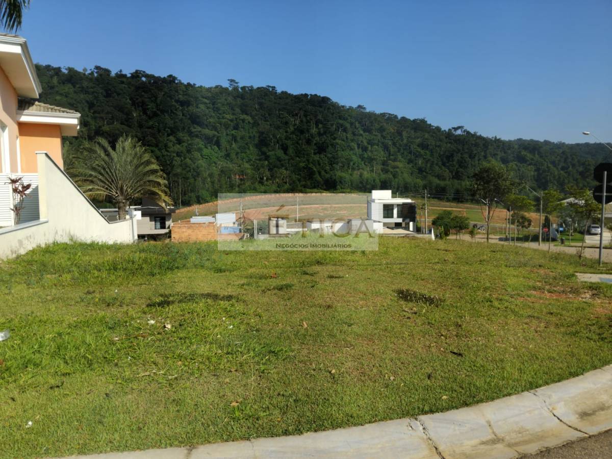 Com 538m² de área total, este terreno em declive, com vista para mata, localizado no Condomínio Ibiaram 2, esta pronto para construir.